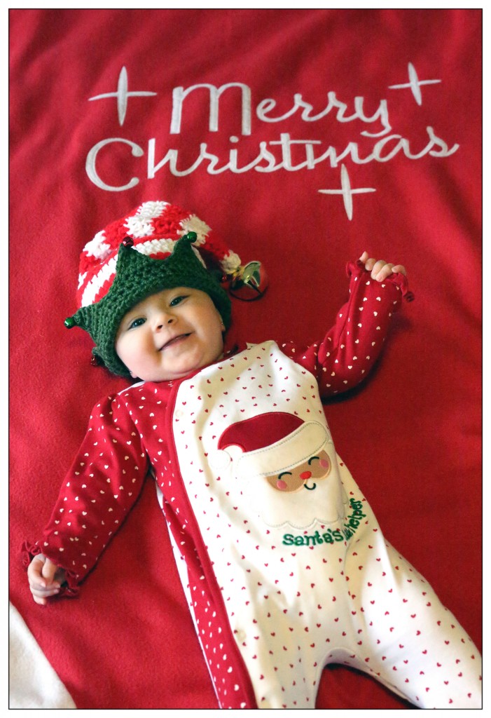 I have been busy crocheting Christmas hats for Faith! Here is a little jingle bells elf hat I made for her :)