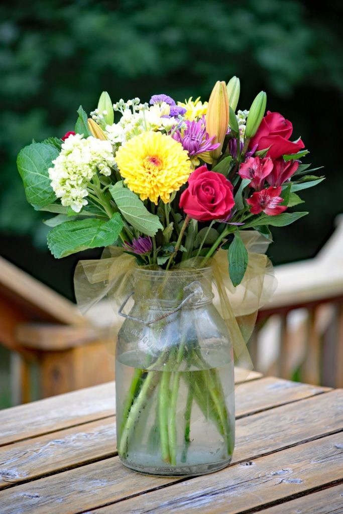 Aaron bought me a huge bouquet of flowers and arranged them in our antique gallon milk jug. Beautiful!
