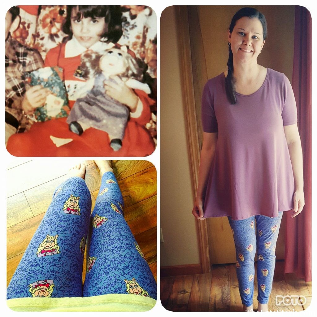 My neighbor, Jessica, is selling Disney Lularoe clothing. She had Miss Piggy leggings, and I just had to get them. Miss Piggy was my favorite as a child. I even had a Miss Piggy doll.