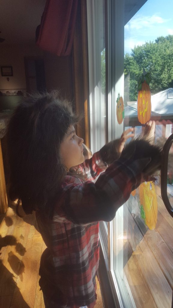 Faith asked to put up Halloween decorations this weekend, and I told her ok. She went full out and dressed up in her werewolf costume before decorating. #shemeansbusiness #halloweenobsessed