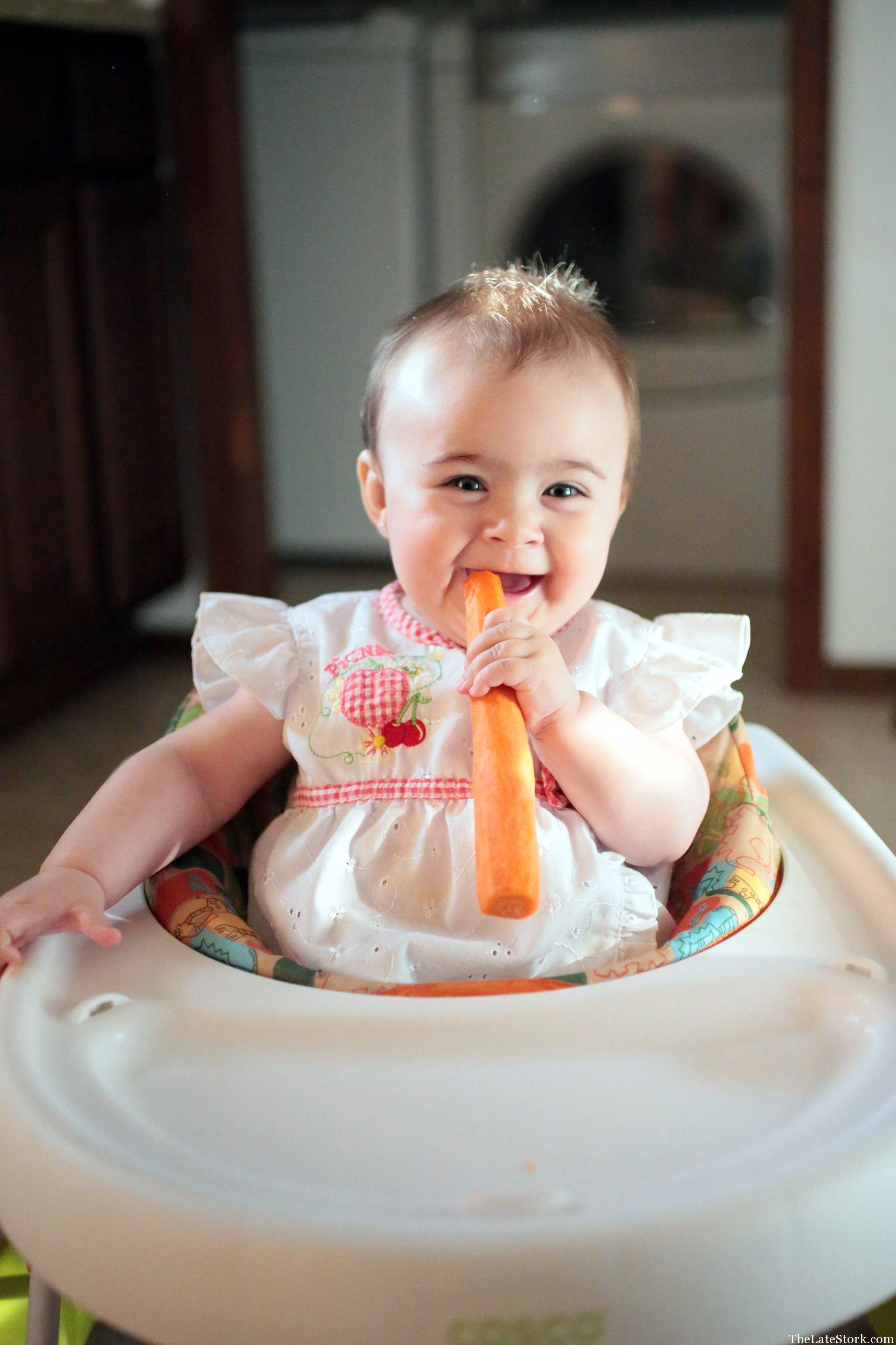 So Aaron went to the store to get carrots, celery, pretzel sticks, Slim Jims… lots of stick food! :) And so far… Faith is really enjoying her carrot stick! :)