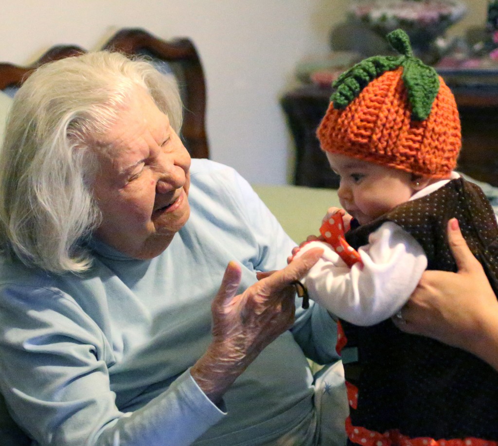 Aaron and I are going to make the trip up to northern Indiana on Thanksgiving so Faith can finally meet her Great Grandma.   What better way to celebrate Thanksgiving than for my 92 year old Grandma to hold her first Great Granddaughter.  I’ve wanted to go there much sooner, but Faith hasn’t tolerated car rides in the past, and she was also going through crying fits every time she would be around someone new.  She is finally growing out of this, slowly but surely.  So now is the time to Grandmother’s house we go!   We will also get to see the rest of my aunts, uncles, and cousins on my mom’s side that haven’t met Faith, yet.  I seriously cannot wait to take pictures of my Grandma holding Faith.  It will be awesome ♥